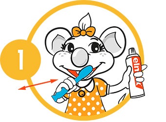 Il est important de montrer la bonne technique de brossage dès le début. La brosse à dents doit être souple et être tenue à 45 degrés par rapport aux gencives. Faites des mouvements circulaires doux lorsque vous guidez la main de votre enfant afin qu’il apprenne le bon mouvement. Sur les surfaces de mastication, faites de légers mouvements de va-et-vient. Vous pouvez utiliser un miroir pour aider votre enfant à voir exactement où la brosse passe... et cela peut même rendre la routine plus amusante ! Dites à votre enfant de ne pas avaler le dentifrice et de le recracher au bout de 2 minutes. Une fois le brossage terminé, ne rincez pas, car cela réduit l’efficacité du fluor. De même, ne le laissez pas manger ou lécher le dentifrice sur le tube.